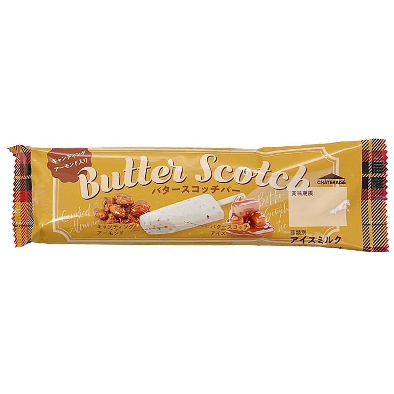 | キャンディングアーモンド入り バタースコッチバー | 1本入り/6本入り | 80円(税込 86円)、400円(税込 432円) |