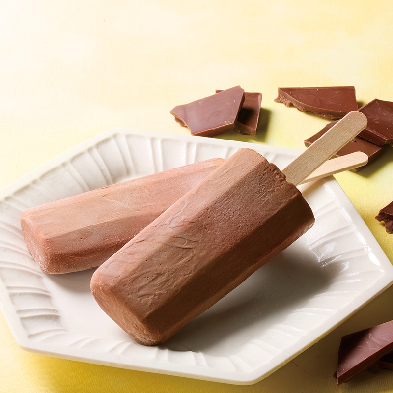 このアイスバーのこだわりは、厳選されたカカオマスと香り高いココアパウダーを贅沢に使用していること。口に入れた瞬間に広がる、深く濃厚なチョコレートの味わいは、まさに大人のためのご褒美スイーツです。さらに、驚くべきはその食感。まるでテリーヌ・オ・ショコラそのもののように、しっとりとした噛み応えが楽しめます。なめらかでコクのある味わいは、北海道産の生クリームと自社で丁寧に割卵した卵黄を合わせることで実現しました。
