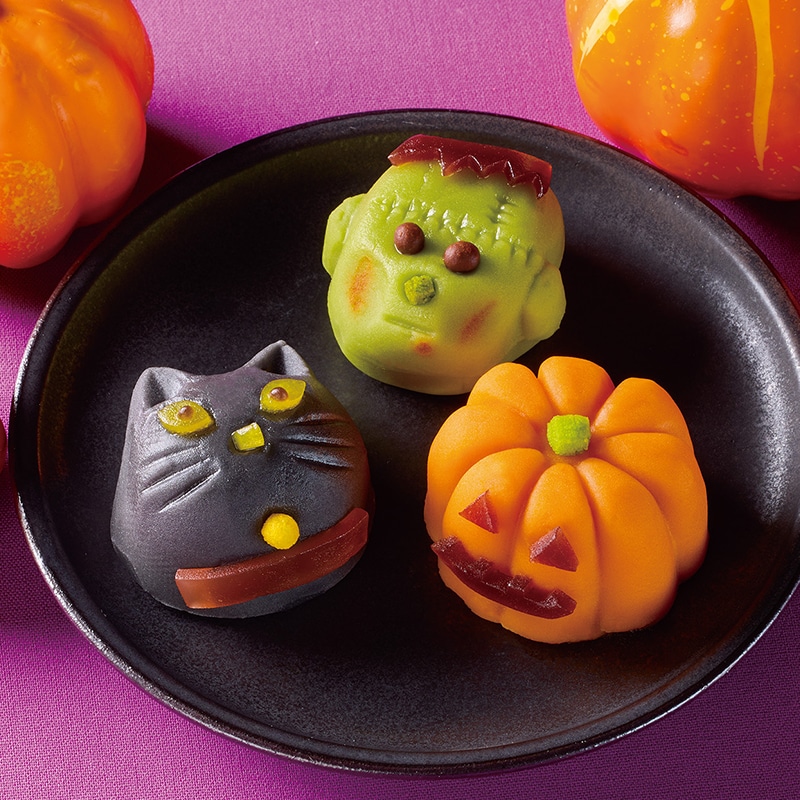 ハロウィンの定番キャラクターが可愛らしい和菓子になっています。